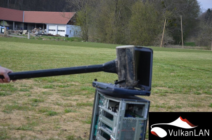 Kraack Pooops Arghhhhh" weiters das PC - Weitwerfen u. das Zerstören von PC Hardware mit einem 18KG Hammer "Yeaaaa".